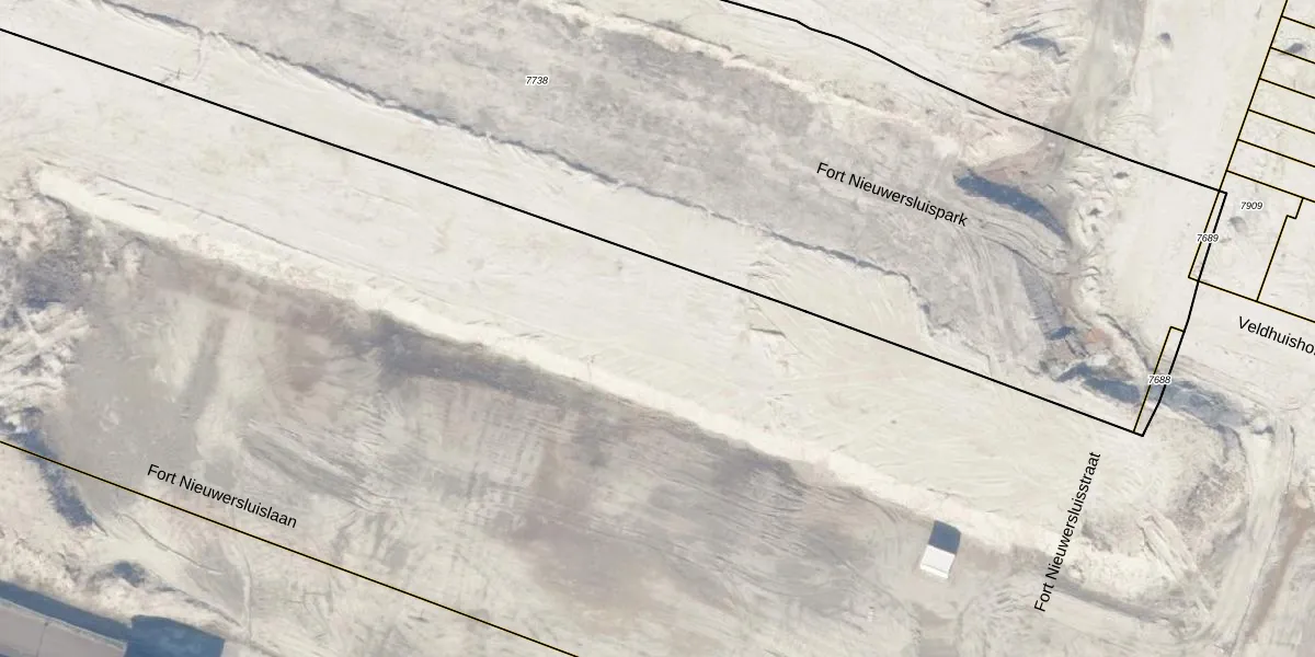 Het perceel waarop Fort Nieuwersluispark 7 staat heeft een oppervlakte van 5,9 ha. Dit is een zeer groot perceel. De perceeloppervlakte wordt geregistreerd door het Kadaster. Gedetailleerde informatie over de maten van dit perceel kunt u vinden in het rapport Kadastrale kaart met maatvoering van Fort Nieuwersluispark 7.