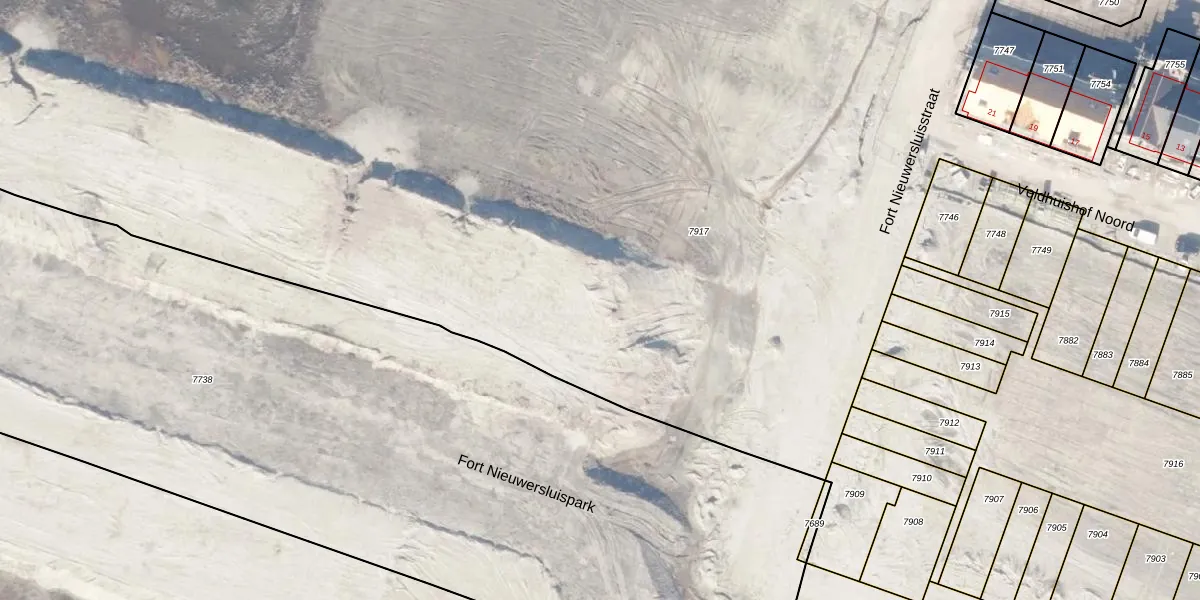 Het perceel waarop Fort Nieuwersluispark 8 staat heeft een oppervlakte van 5,9 ha. Dit is een zeer groot perceel. De perceeloppervlakte wordt geregistreerd door het Kadaster. Gedetailleerde informatie over de maten van dit perceel kunt u vinden in het rapport Kadastrale kaart met maatvoering van Fort Nieuwersluispark 8.
