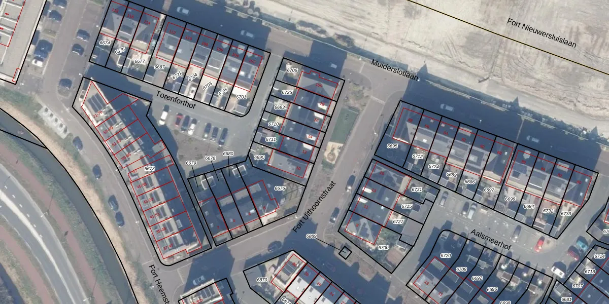 Gebruik de zoekbalk of klik op een perceel voor informatie over de adressen binnen dit perceel.