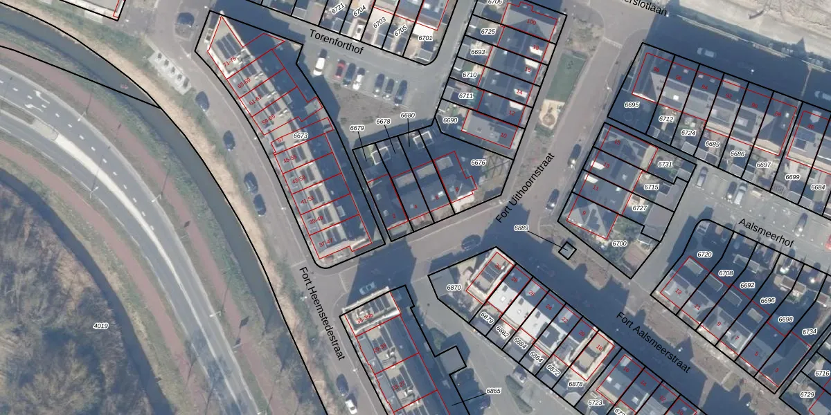 Gebruik de zoekbalk of klik op een perceel voor informatie over de adressen binnen dit perceel.
