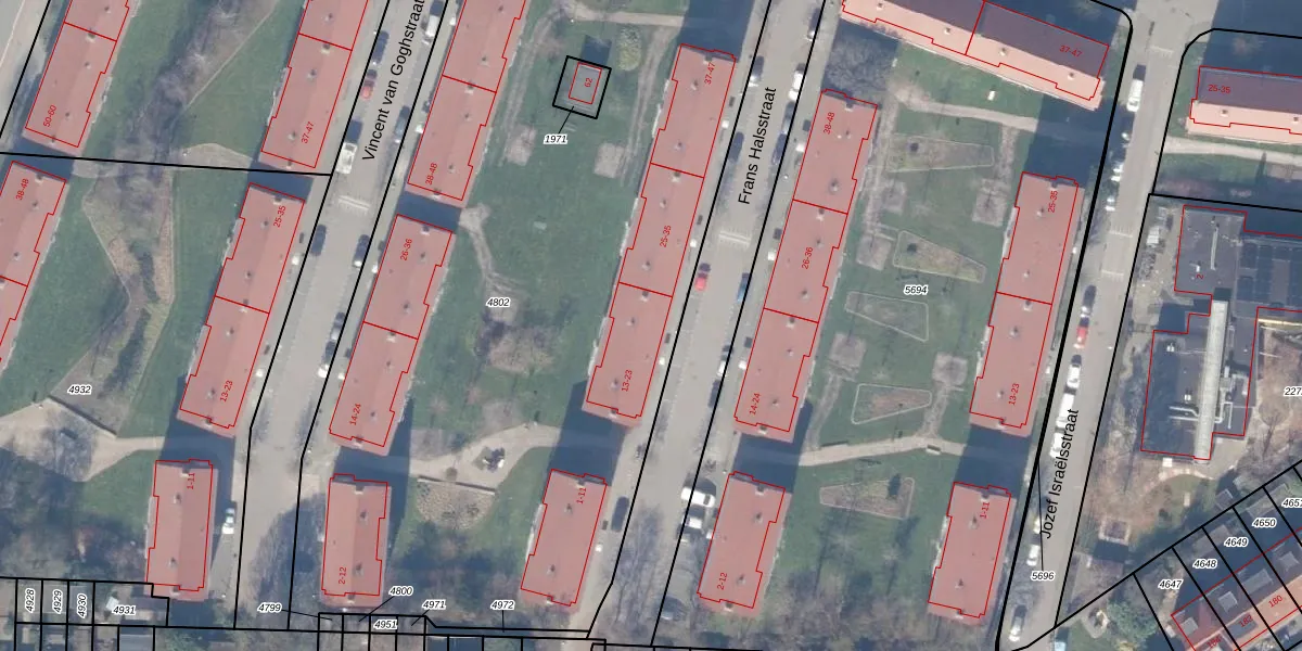 Het perceel waarop Frans Halsstraat 19 staat heeft een oppervlakte van 6067 m². Dit is een zeer groot perceel. De perceeloppervlakte wordt geregistreerd door het Kadaster. Gedetailleerde informatie over de maten van dit perceel kunt u vinden in het rapport Kadastrale kaart met maatvoering van Frans Halsstraat 19.
