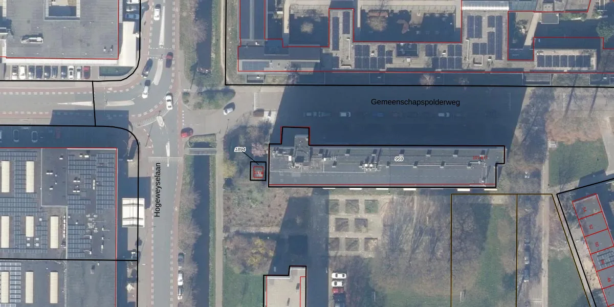 Het adres is gelegen op perceel 959 in de sectie C en de kadastrale gemeente Weesp. De kadastrale aanduiding is aldus WEE02-C-959. Het perceel is 1105 m² groot. Dat is kleiner dan de gemiddelde perceeloppervlakte in Weesp, dat op 2523,05 m² ligt. Het grootste perceel in de kadastrale gemeente is 27,8 ha. Het kleinste perceel heeft een oppervlakte van 0 m². Op het perceel zijn 72 adressen aanwezig. De laatste wijziging in het de Basisregistratie Kadaster (BRK) was op 01-02-2001.