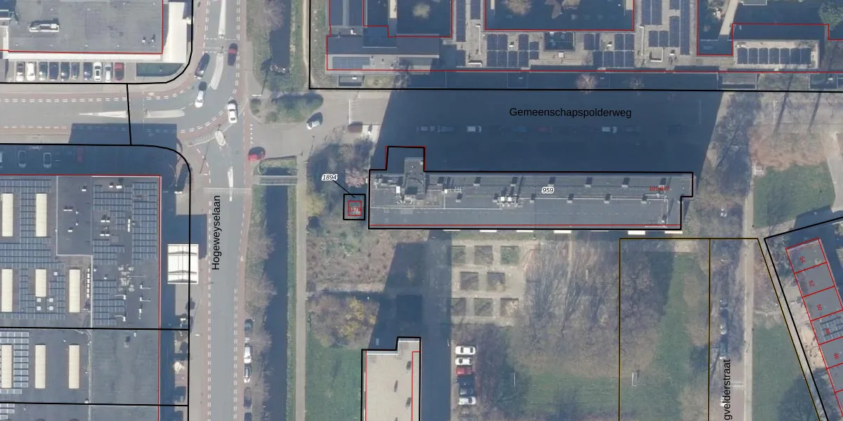 Het adres is gelegen op perceel 959 in de sectie C en de kadastrale gemeente Weesp. De kadastrale aanduiding is aldus WEE02-C-959. Het perceel is 1105 m² groot. Dat is kleiner dan de gemiddelde perceeloppervlakte in Weesp, dat op 2523,05 m² ligt. Het grootste perceel in de kadastrale gemeente is 27,8 ha. Het kleinste perceel heeft een oppervlakte van 0 m². Op het perceel liggen in totaal 72 adressen. De laatste wijziging in het de Basisregistratie Kadaster (BRK) was op 01-02-2001.