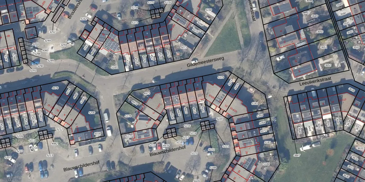 Gebruik de zoekbalk of klik op een perceel voor informatie over de adressen binnen dit perceel.