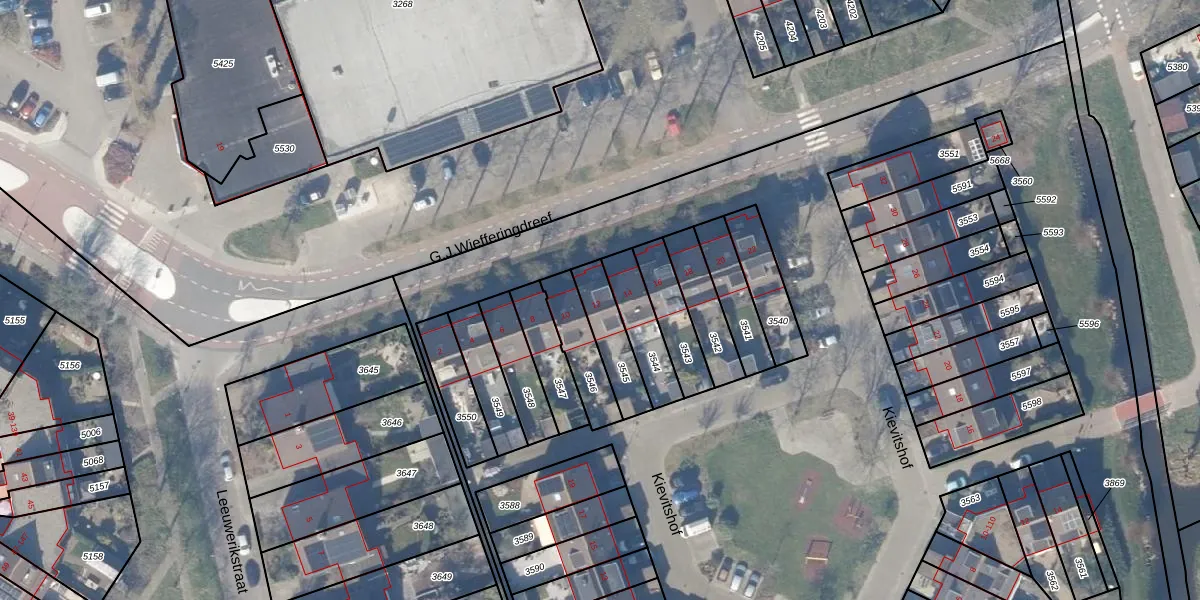 G.J.Wiefferingdreef 12 is gelegen op kadastraal perceel WEE02B3545. Deze kadastrale aanduiding is uniek en wordt gebruikt door het Kadaster om eigendomsrechten en andere zakelijke rechten vast te leggen. Het perceel maakt onderdeel uit van de kadastrale gemeente Weesp.