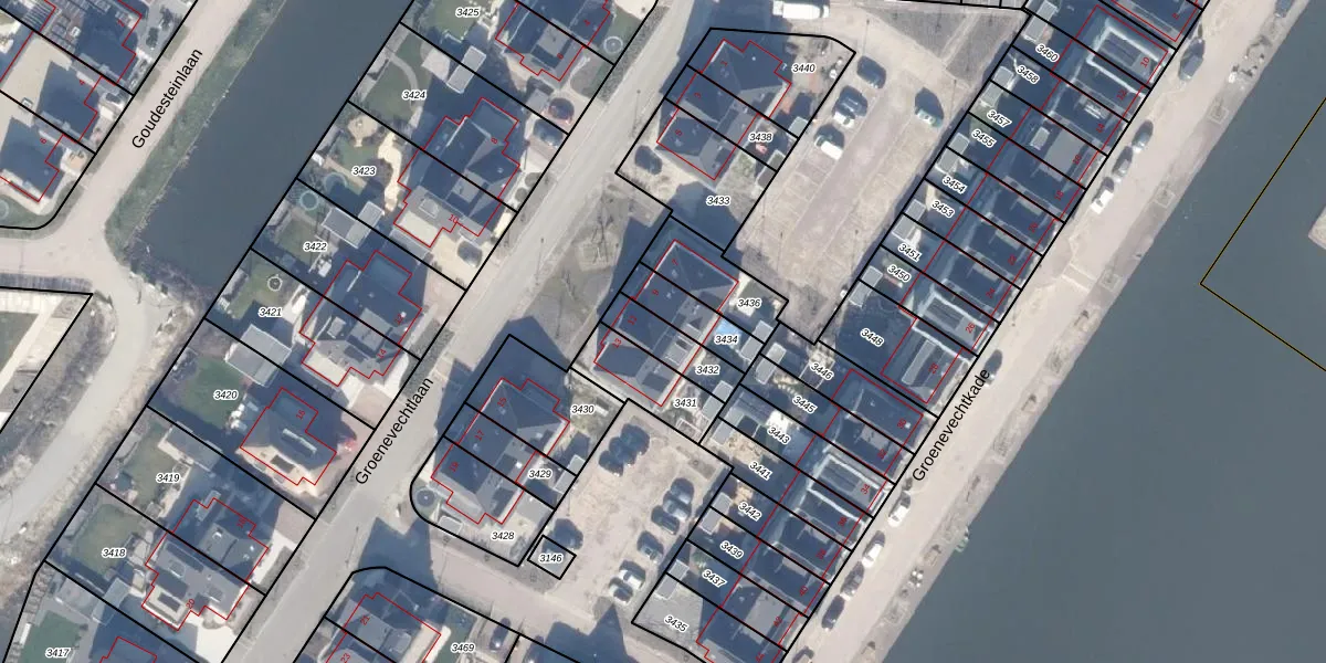 Gebruik de zoekbalk of klik op een perceel voor informatie over de adressen binnen dit perceel.