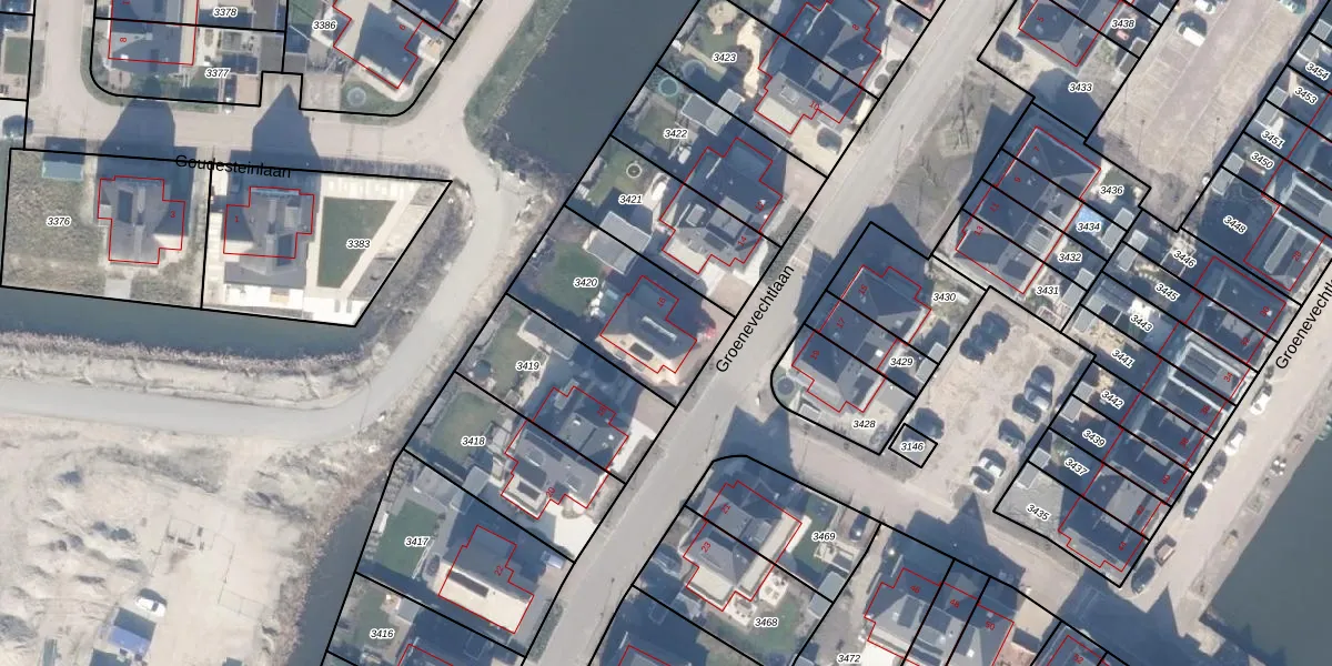 Groenevechtlaan 16 is gelegen op kadastraal perceel WEE02F3420. Deze kadastrale aanduiding is uniek en wordt gebruikt door het Kadaster om eigendomsrechten en andere zakelijke rechten vast te leggen. Het perceel maakt onderdeel uit van de kadastrale gemeente Weesp.