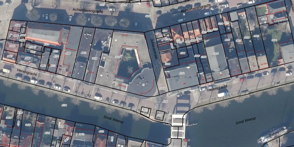 Het adres is gelegen op perceel 3225 in de sectie A en de kadastrale gemeente Weesp. De kadastrale aanduiding is aldus WEE02-A-3225. Het perceel is kleiner dan gemiddeld in Weesp. Het perceel is 1370 m² groot, terwijl het gemiddelde ligt op 2523,05 m². Het grootste perceel in de kadastrale gemeente is 27,8 ha. Het kleinste perceel heeft een oppervlakte van 0 m². Op het perceel zijn 37 adressen aanwezig. In de Basisregistratie Kadaster (BRK) werden de grenzen van het perceel geregistreerd op 28-12-1998.