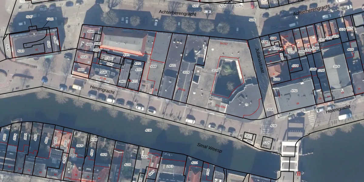 Het perceel waarop Herengracht 33-a staat heeft een oppervlakte van 375 m². Dit is een groot perceel. De perceeloppervlakte wordt geregistreerd door het Kadaster. Gedetailleerde informatie over de maten van dit perceel kunt u vinden in het rapport Kadastrale kaart met maatvoering van Herengracht 33-a.