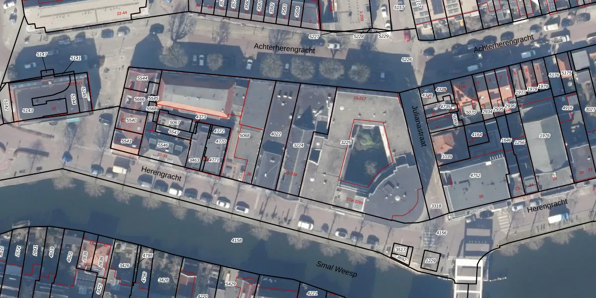 Het perceel waarop Herengracht 33-d staat heeft een oppervlakte van 375 m². Dit is een groot perceel. De perceeloppervlakte wordt geregistreerd door het Kadaster. Gedetailleerde informatie over de maten van dit perceel kunt u vinden in het rapport Kadastrale kaart met maatvoering van Herengracht 33-d.