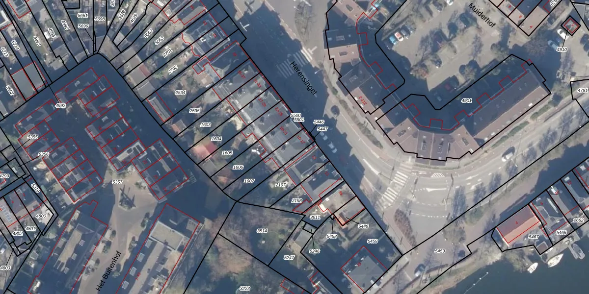 Het adres is gelegen op perceel 1607 in de sectie A en de kadastrale gemeente Weesp. De kadastrale aanduiding is aldus WEE02-A-1607. Het perceel is kleiner dan gemiddeld in Weesp. Het perceel is 205 m² groot, terwijl het gemiddelde ligt op 2523,05 m². Het kleinste perceel in de kadastrale gemeente is 0 m² groot. De grootste perceeloppervlakte is 27,8 ha. Op het perceel zijn 2 adressen aanwezig. De laatste wijziging in het de Basisregistratie Kadaster (BRK) was op 04-11-2011.