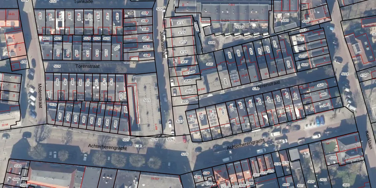 Het perceel waarop Herenstraat 30 staat heeft een oppervlakte van 73 m². Dit is een klein perceel. De perceeloppervlakte wordt geregistreerd door het Kadaster. Gedetailleerde informatie over de maten van dit perceel kunt u vinden in het rapport Kadastrale kaart met maatvoering van Herenstraat 30.