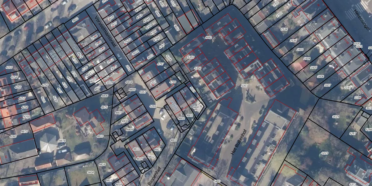 Het perceel waarop Het Binnenhof 2 staat heeft een oppervlakte van 96 m². Dit is een klein perceel. De perceeloppervlakte wordt geregistreerd door het Kadaster. Gedetailleerde informatie over de maten van dit perceel kunt u vinden in het rapport Kadastrale kaart met maatvoering van Het Binnenhof 2.
