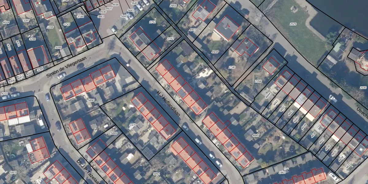 H.J.Hoflandlaan 7 is gelegen op kadastraal perceel WEE02B4845. Deze kadastrale aanduiding is uniek en wordt gebruikt door het Kadaster om eigendomsrechten en andere zakelijke rechten vast te leggen. Het perceel maakt onderdeel uit van de kadastrale gemeente Weesp.