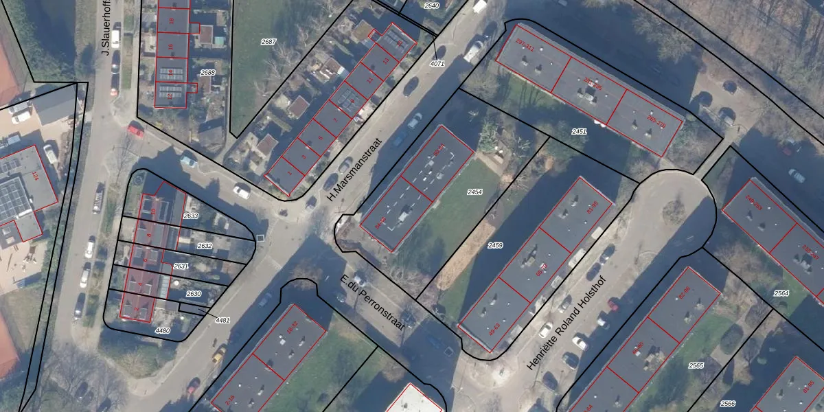 Het perceel waarop H.Marsmanstraat 46 staat heeft een oppervlakte van 1235 m². Dit is een zeer groot perceel. De perceeloppervlakte wordt geregistreerd door het Kadaster. Gedetailleerde informatie over de maten van dit perceel kunt u vinden in het rapport Kadastrale kaart met maatvoering van H.Marsmanstraat 46.