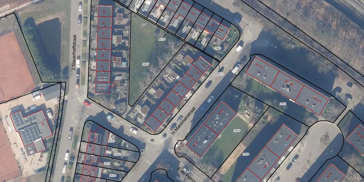 Het perceel waarop H.Marsmanstraat 9 staat heeft een oppervlakte van 2512 m². Dit is een zeer groot perceel. De perceeloppervlakte wordt geregistreerd door het Kadaster. Gedetailleerde informatie over de maten van dit perceel kunt u vinden in het rapport Kadastrale kaart met maatvoering van H.Marsmanstraat 9.