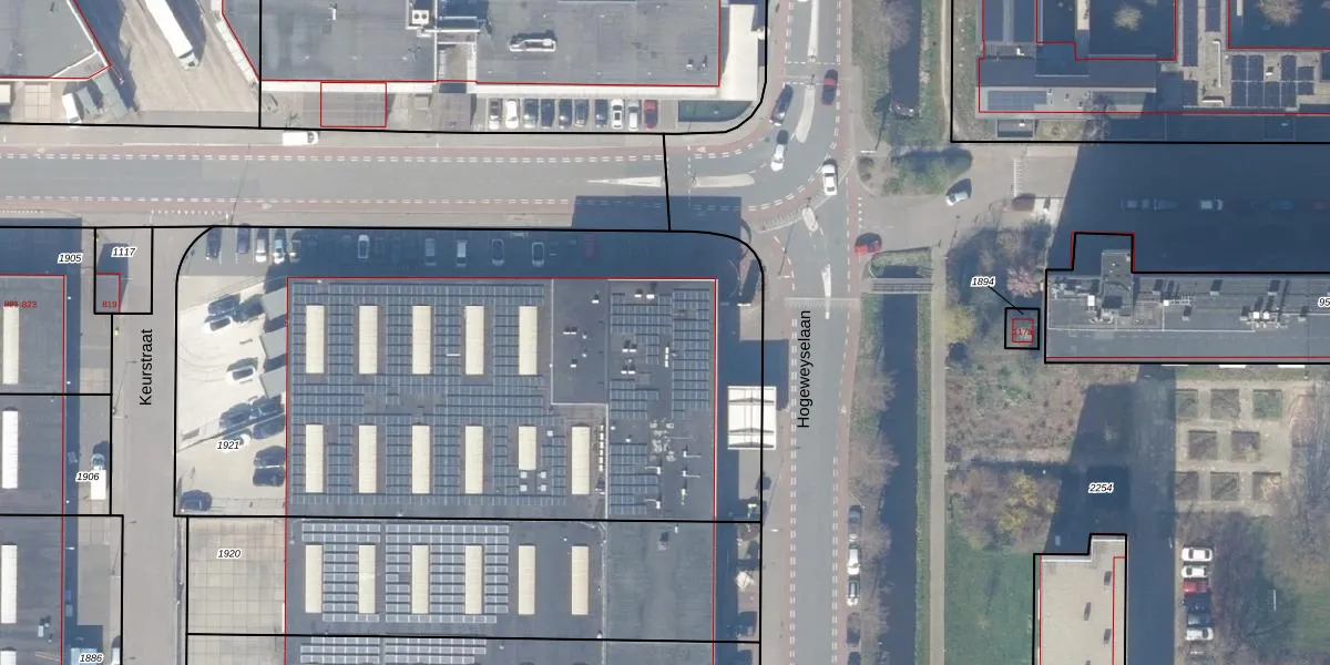 Het perceel waarop Hogeweyselaan 151 staat heeft een oppervlakte van 3790 m². Dit is een zeer groot perceel. De perceeloppervlakte wordt geregistreerd door het Kadaster. Gedetailleerde informatie over de maten van dit perceel kunt u vinden in het rapport Kadastrale kaart met maatvoering van Hogeweyselaan 151.