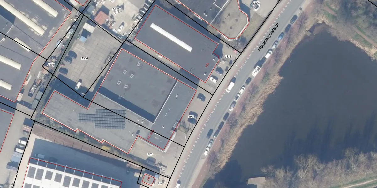 Het perceel waarop Hogeweyselaan 221-d staat heeft een oppervlakte van 1970 m². Dit is een zeer groot perceel. De perceeloppervlakte wordt geregistreerd door het Kadaster. Gedetailleerde informatie over de maten van dit perceel kunt u vinden in het rapport Kadastrale kaart met maatvoering van Hogeweyselaan 221-d.