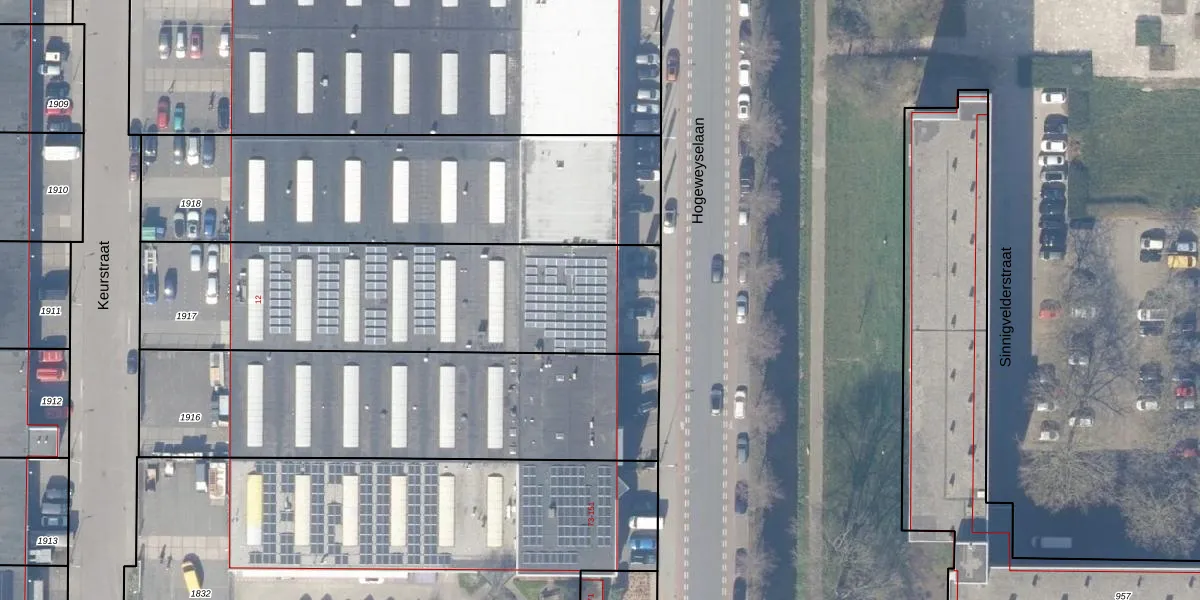 Het perceel waarop Hogeweyselaan 91 staat heeft een oppervlakte van 1565 m². Dit is een zeer groot perceel. De perceeloppervlakte wordt geregistreerd door het Kadaster. Gedetailleerde informatie over de maten van dit perceel kunt u vinden in het rapport Kadastrale kaart met maatvoering van Hogeweyselaan 91.