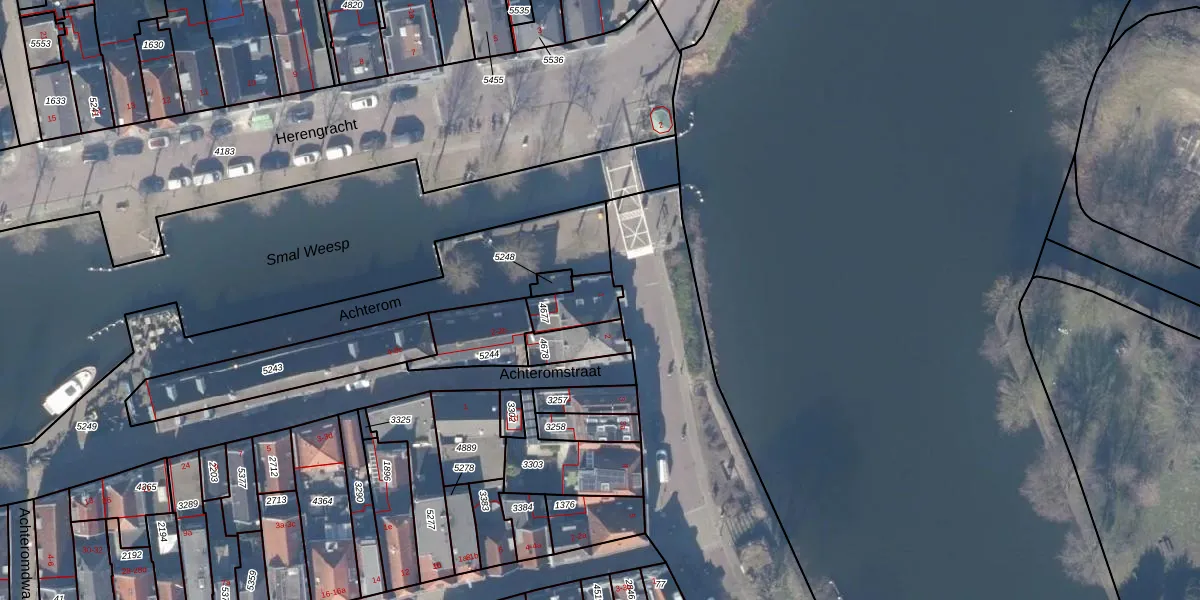 Het adres is gelegen op perceel 4677 in de sectie A en de kadastrale gemeente Weesp. De kadastrale aanduiding is aldus WEE02-A-4677. Het perceel is kleiner dan gemiddeld in Weesp. Het perceel is 103 m² groot, terwijl het gemiddelde ligt op 2523,05 m². Het kleinste perceel in de kadastrale gemeente is 0 m² groot. De grootste perceeloppervlakte is 27,8 ha. Op het perceel bevinden zich geen andere adressen. In de Basisregistratie Kadaster (BRK) werden de grenzen van het perceel geregistreerd op 15-02-1999.