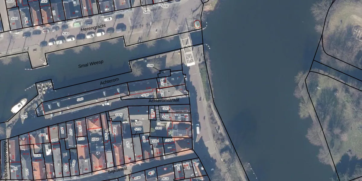 Het adres is gelegen op perceel 4678 in de sectie A en de kadastrale gemeente Weesp. De kadastrale aanduiding is aldus WEE02-A-4678. Het perceel is kleiner dan gemiddeld in Weesp. Het perceel is 95 m² groot, terwijl het gemiddelde ligt op 2523,05 m². Het kleinste perceel in de kadastrale gemeente is 0 m² groot. De grootste perceeloppervlakte is 27,8 ha. Op het perceel bevinden zich geen andere adressen. De huidige grenzen van het perceel zijn digitaal in de Basisregistratie Kadaster (BRK) geregistreerd op 15-02-1999.