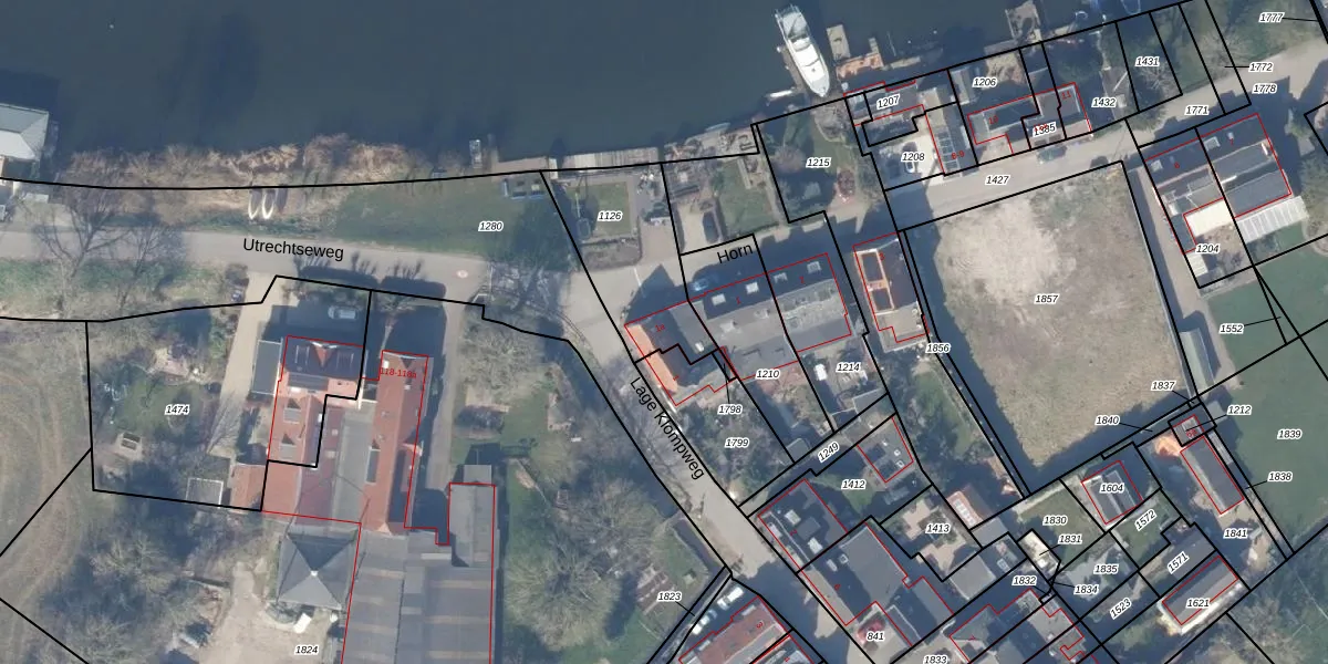 Het perceel waarop Horn 1-a staat heeft een oppervlakte van 425 m². Dit is een groot perceel. De perceeloppervlakte wordt geregistreerd door het Kadaster. Gedetailleerde informatie over de maten van dit perceel kunt u vinden in het rapport Kadastrale kaart met maatvoering van Horn 1-a.