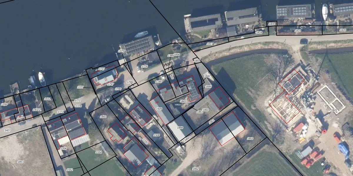 Het perceel waarop Horn 17 staat heeft een oppervlakte van 84 m². Dit is een klein perceel. De perceeloppervlakte wordt geregistreerd door het Kadaster. Gedetailleerde informatie over de maten van dit perceel kunt u vinden in het rapport Kadastrale kaart met maatvoering van Horn 17.