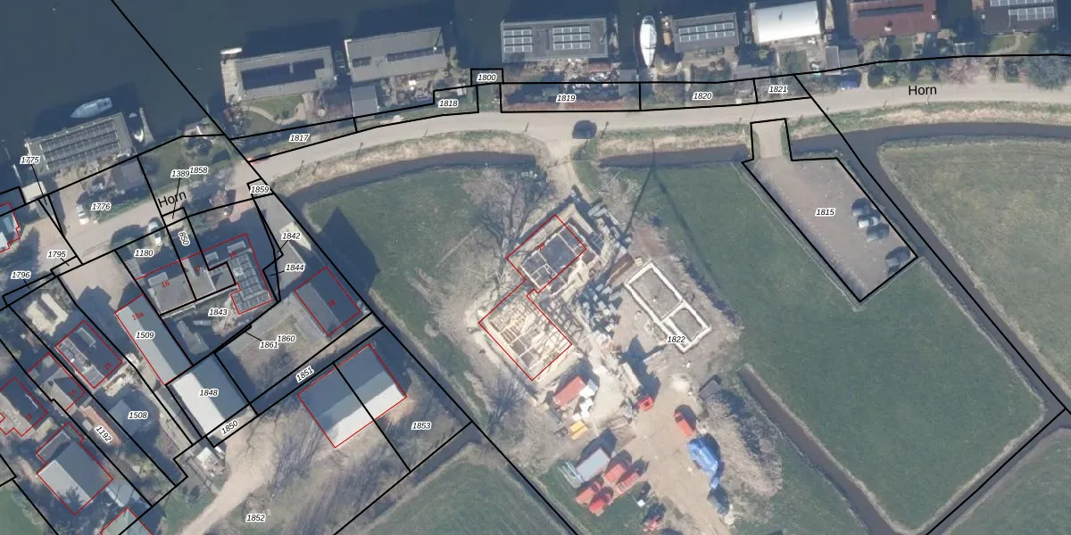 Het perceel waarop Horn 20 staat heeft een oppervlakte van 9112 m². Dit is een zeer groot perceel. De perceeloppervlakte wordt geregistreerd door het Kadaster. Gedetailleerde informatie over de maten van dit perceel kunt u vinden in het rapport Kadastrale kaart met maatvoering van Horn 20.