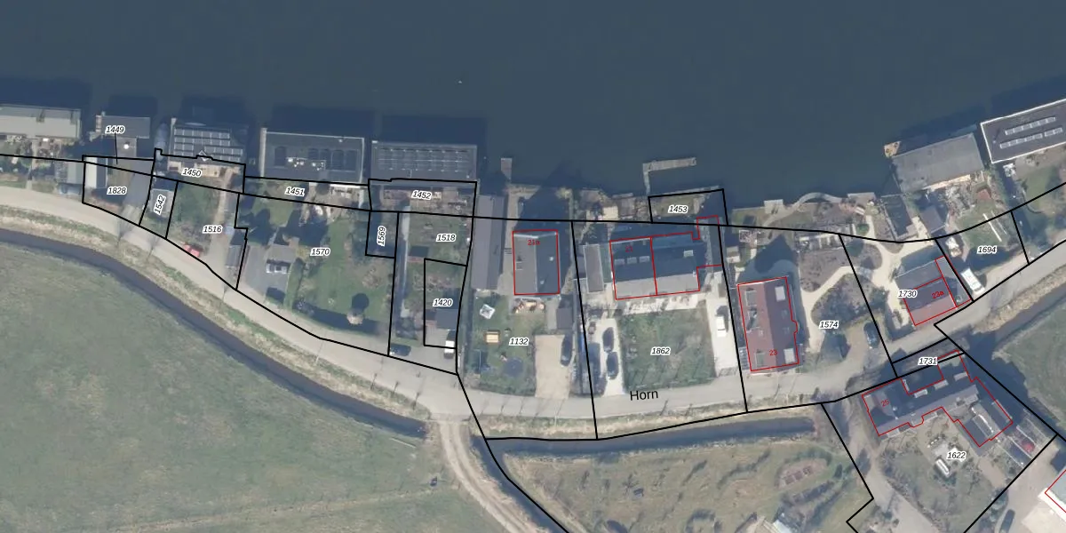 Het perceel waarop Horn 21-a staat heeft een oppervlakte van 920 m². Dit is een groot perceel. De perceeloppervlakte wordt geregistreerd door het Kadaster. Gedetailleerde informatie over de maten van dit perceel kunt u vinden in het rapport Kadastrale kaart met maatvoering van Horn 21-a.