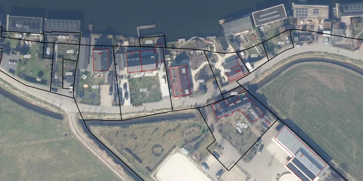 Het perceel waarop Horn 23 staat heeft een oppervlakte van 845 m². Dit is een groot perceel. De perceeloppervlakte wordt geregistreerd door het Kadaster. Gedetailleerde informatie over de maten van dit perceel kunt u vinden in het rapport Kadastrale kaart met maatvoering van Horn 23.