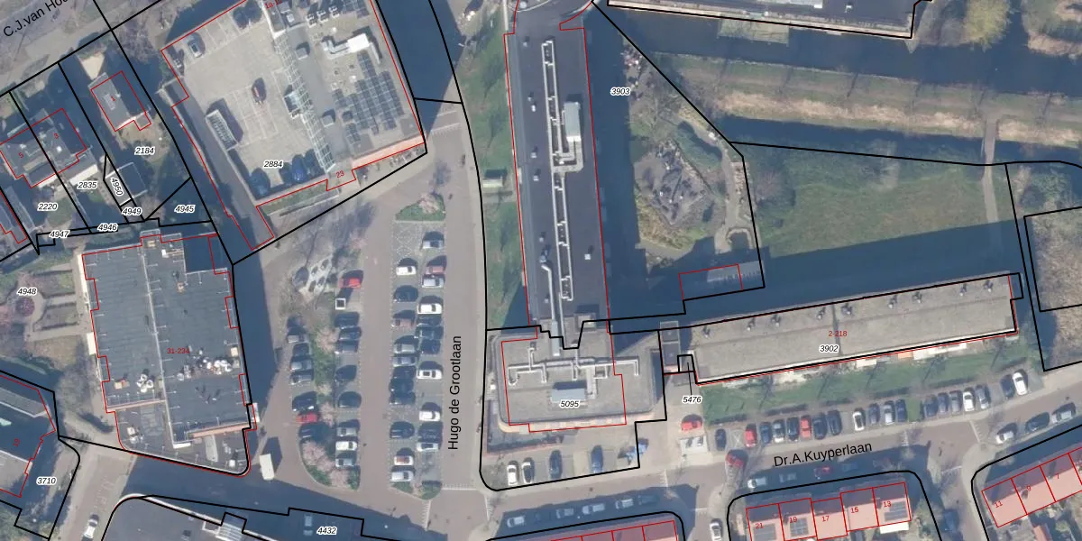 Het perceel waarop Hugo de Grootlaan 30-a-237 staat heeft een oppervlakte van 4180 m². Dit is een zeer groot perceel. De perceeloppervlakte wordt geregistreerd door het Kadaster. Gedetailleerde informatie over de maten van dit perceel kunt u vinden in het rapport Kadastrale kaart met maatvoering van Hugo de Grootlaan 30-a-237.
