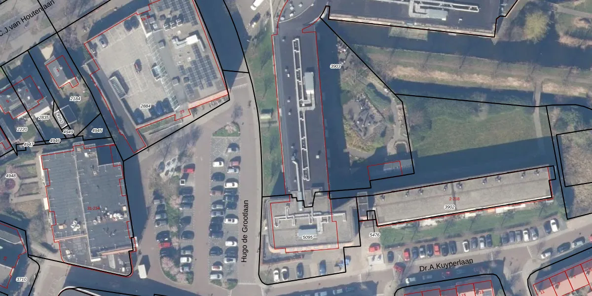 Het perceel waarop Hugo de Grootlaan 30-a-335 staat heeft een oppervlakte van 4180 m². Dit is een zeer groot perceel. De perceeloppervlakte wordt geregistreerd door het Kadaster. Gedetailleerde informatie over de maten van dit perceel kunt u vinden in het rapport Kadastrale kaart met maatvoering van Hugo de Grootlaan 30-a-335.
