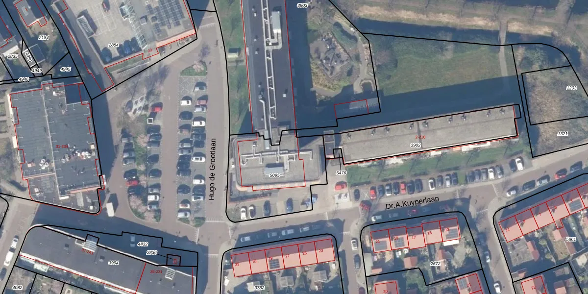 Het perceel waarop Hugo de Grootlaan 30-a-440 staat heeft een oppervlakte van 862 m². Dit is een groot perceel. De perceeloppervlakte wordt geregistreerd door het Kadaster. Gedetailleerde informatie over de maten van dit perceel kunt u vinden in het rapport Kadastrale kaart met maatvoering van Hugo de Grootlaan 30-a-440.