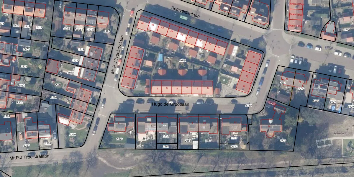 Het perceel waarop Hugo de Grootlaan 5 staat heeft een oppervlakte van 2903 m². Dit is een zeer groot perceel. De perceeloppervlakte wordt geregistreerd door het Kadaster. Gedetailleerde informatie over de maten van dit perceel kunt u vinden in het rapport Kadastrale kaart met maatvoering van Hugo de Grootlaan 5.