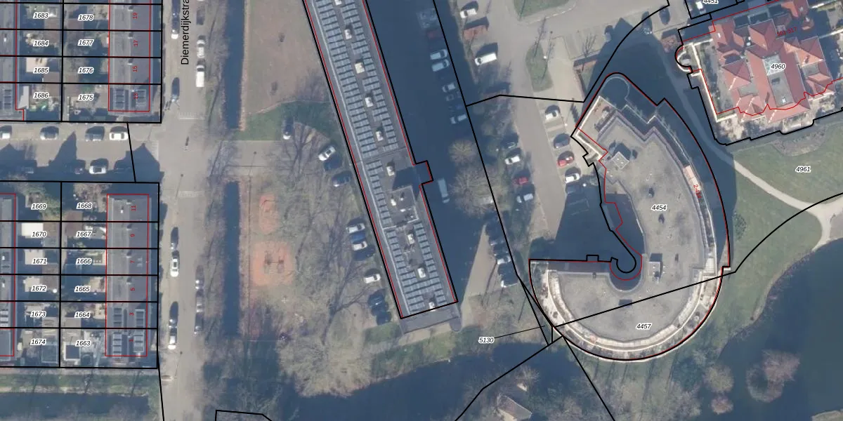 Het adres is gelegen op perceel 2684 in de sectie B en de kadastrale gemeente Weesp. De kadastrale aanduiding is aldus WEE02-B-2684. De gemiddelde perceelgrootte in Weesp is 2523,05 m². Dit perceel is kleiner: de perceeloppervlakte bedraagt 1949 m². Het grootste perceel in de kadastrale gemeente is 27,8 ha. Het kleinste perceel heeft een oppervlakte van 0 m². Er zijn 151 adressen aanwezig op het perceel. In de Basisregistratie Kadaster (BRK) werden de grenzen van het perceel geregistreerd op 01-11-2004.