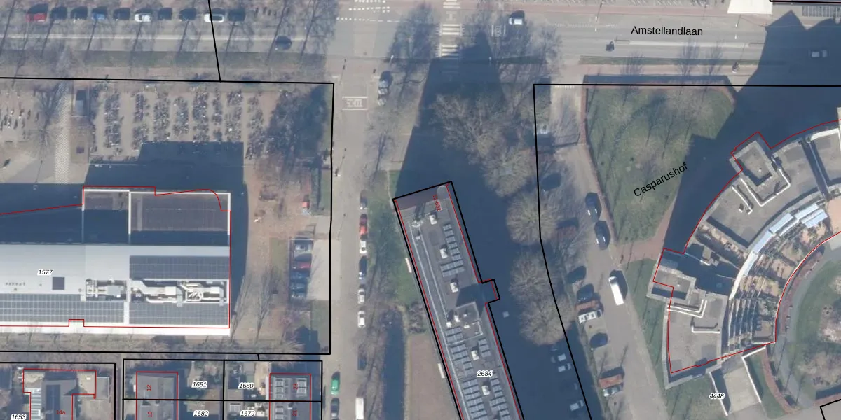 Het adres is gelegen op perceel 2684 in de sectie B en de kadastrale gemeente Weesp. De kadastrale aanduiding is aldus WEE02-B-2684. De gemiddelde perceelgrootte in Weesp is 2523,05 m². Dit perceel is kleiner: de perceeloppervlakte bedraagt 1949 m². Het kleinste perceel in de kadastrale gemeente is 0 m² groot. De grootste perceeloppervlakte is 27,8 ha. Er zijn 151 adressen aanwezig op het perceel. De huidige grenzen van het perceel zijn digitaal in de Basisregistratie Kadaster (BRK) geregistreerd op 01-11-2004.