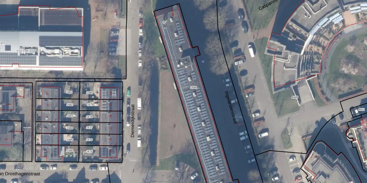 Ingelandenstraat 721 is gelegen op kadastraal perceel WEE02B2684. Deze kadastrale aanduiding is uniek en wordt gebruikt door het Kadaster om eigendomsrechten en andere zakelijke rechten vast te leggen. Het perceel maakt onderdeel uit van de kadastrale gemeente Weesp.