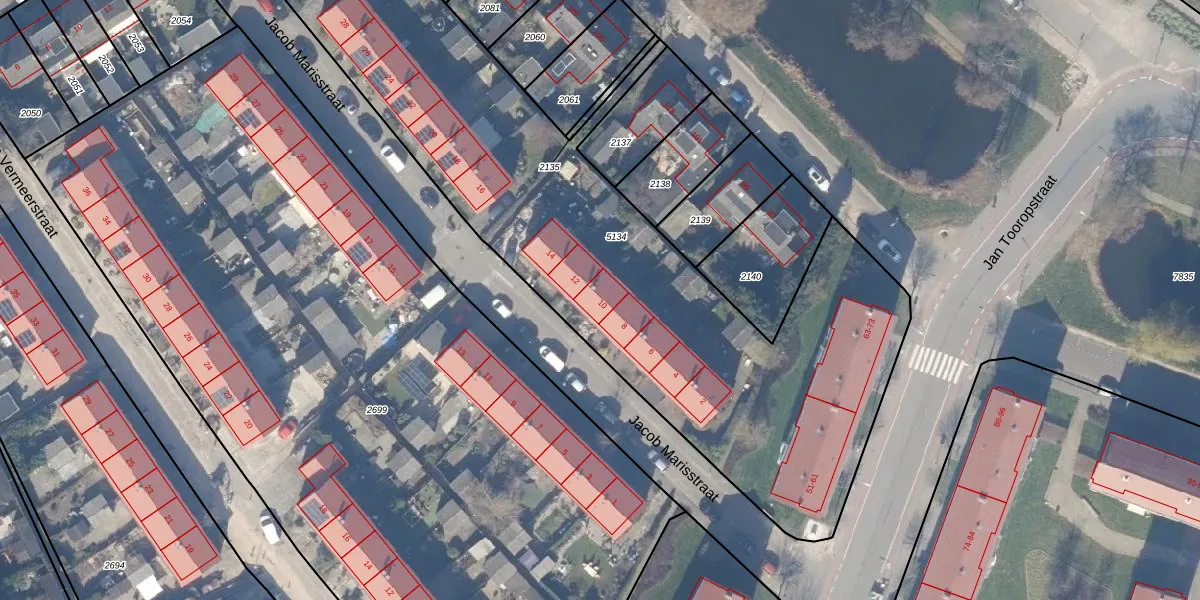 Het perceel waarop Jacob Marisstraat 10 staat heeft een oppervlakte van 3110 m². Dit is een zeer groot perceel. De perceeloppervlakte wordt geregistreerd door het Kadaster. Gedetailleerde informatie over de maten van dit perceel kunt u vinden in het rapport Kadastrale kaart met maatvoering van Jacob Marisstraat 10.