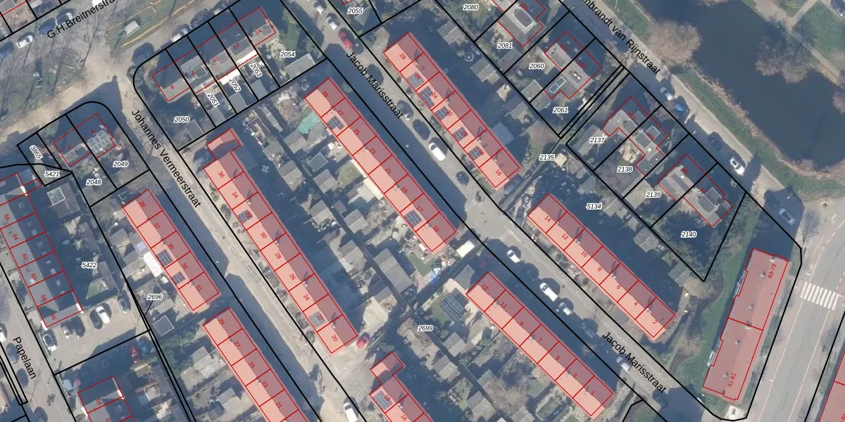 Het perceel waarop Jacob Marisstraat 17 staat heeft een oppervlakte van 5846 m². Dit is een zeer groot perceel. De perceeloppervlakte wordt geregistreerd door het Kadaster. Gedetailleerde informatie over de maten van dit perceel kunt u vinden in het rapport Kadastrale kaart met maatvoering van Jacob Marisstraat 17.