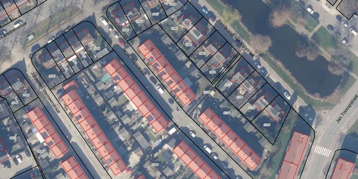 Het perceel waarop Jacob Marisstraat 18 staat heeft een oppervlakte van 3110 m². Dit is een zeer groot perceel. De perceeloppervlakte wordt geregistreerd door het Kadaster. Gedetailleerde informatie over de maten van dit perceel kunt u vinden in het rapport Kadastrale kaart met maatvoering van Jacob Marisstraat 18.