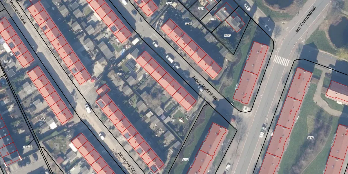 Het perceel waarop Jacob Marisstraat 5 staat heeft een oppervlakte van 5846 m². Dit is een zeer groot perceel. De perceeloppervlakte wordt geregistreerd door het Kadaster. Gedetailleerde informatie over de maten van dit perceel kunt u vinden in het rapport Kadastrale kaart met maatvoering van Jacob Marisstraat 5.