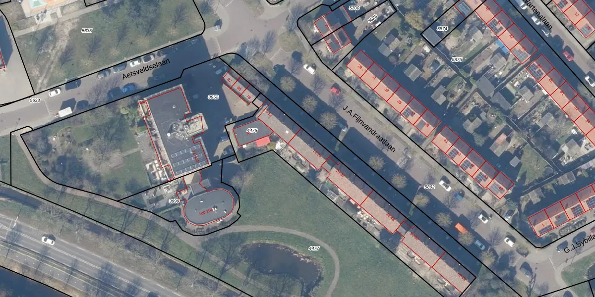 Het perceel waarop J.A.Fijnvandraatlaan 18 staat heeft een oppervlakte van 1245 m². Dit is een zeer groot perceel. De perceeloppervlakte wordt geregistreerd door het Kadaster. Gedetailleerde informatie over de maten van dit perceel kunt u vinden in het rapport Kadastrale kaart met maatvoering van J.A.Fijnvandraatlaan 18.