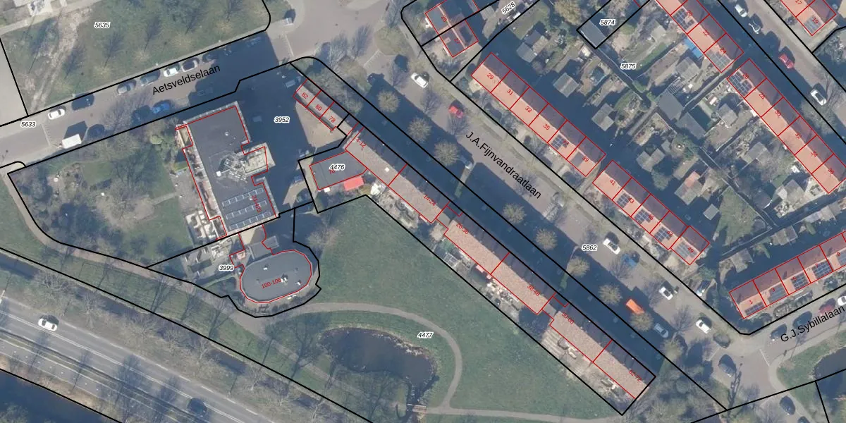 Het perceel waarop J.A.Fijnvandraatlaan 24 staat heeft een oppervlakte van 1245 m². Dit is een zeer groot perceel. De perceeloppervlakte wordt geregistreerd door het Kadaster. Gedetailleerde informatie over de maten van dit perceel kunt u vinden in het rapport Kadastrale kaart met maatvoering van J.A.Fijnvandraatlaan 24.