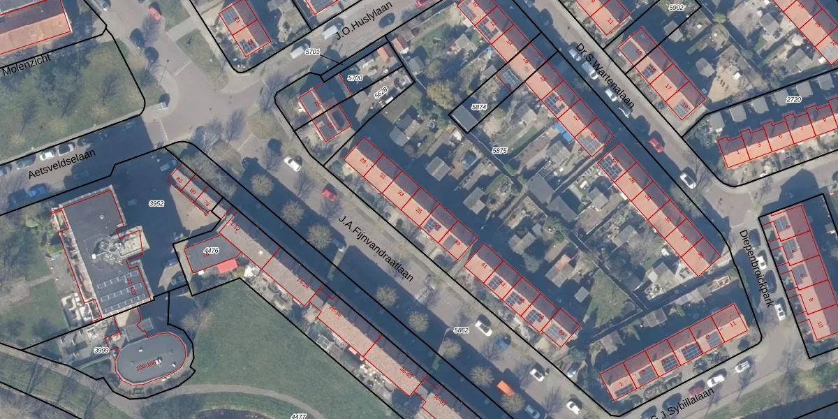 Het perceel waarop J.A.Fijnvandraatlaan 35 staat heeft een oppervlakte van 5290 m². Dit is een zeer groot perceel. De perceeloppervlakte wordt geregistreerd door het Kadaster. Gedetailleerde informatie over de maten van dit perceel kunt u vinden in het rapport Kadastrale kaart met maatvoering van J.A.Fijnvandraatlaan 35.