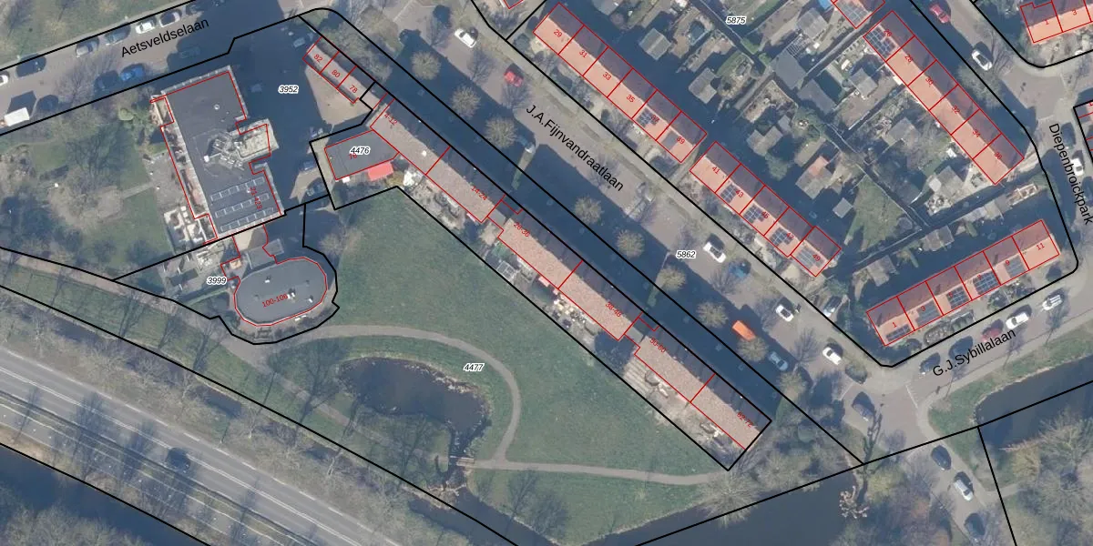 Het perceel waarop J.A.Fijnvandraatlaan 36 staat heeft een oppervlakte van 1245 m². Dit is een zeer groot perceel. De perceeloppervlakte wordt geregistreerd door het Kadaster. Gedetailleerde informatie over de maten van dit perceel kunt u vinden in het rapport Kadastrale kaart met maatvoering van J.A.Fijnvandraatlaan 36.