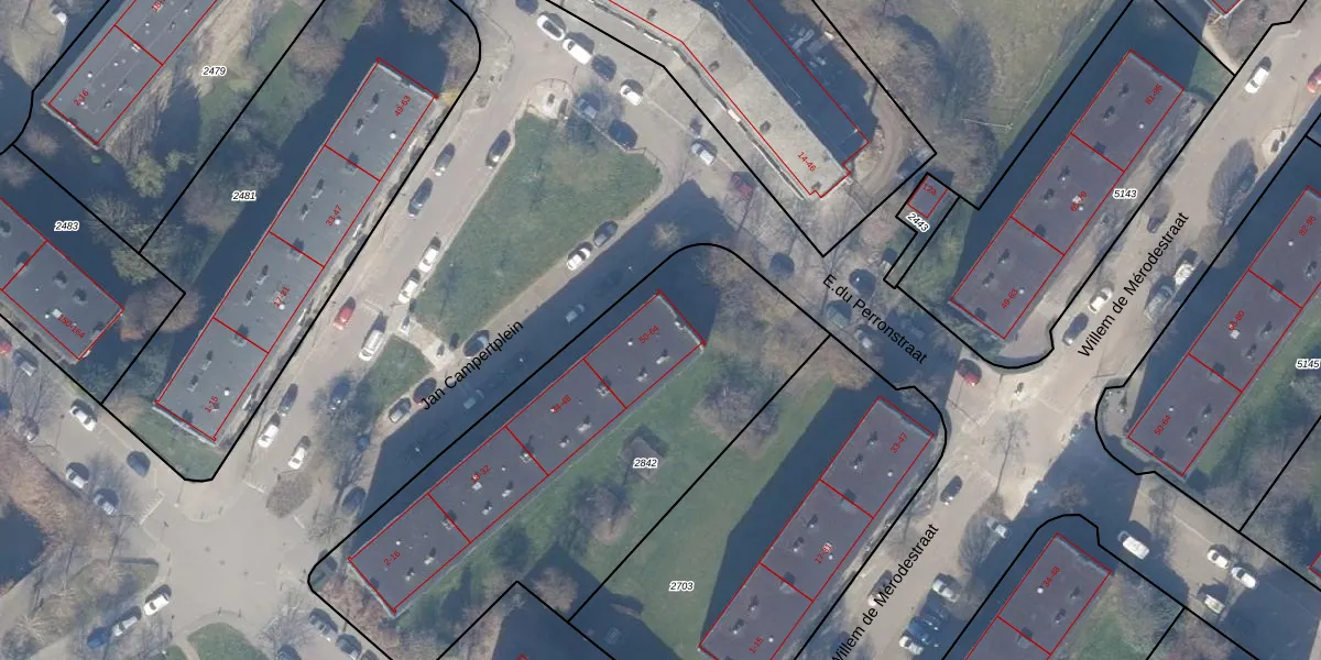 Het perceel waarop Jan Campertplein 60 staat heeft een oppervlakte van 2134 m². Dit is een zeer groot perceel. De perceeloppervlakte wordt geregistreerd door het Kadaster. Gedetailleerde informatie over de maten van dit perceel kunt u vinden in het rapport Kadastrale kaart met maatvoering van Jan Campertplein 60.