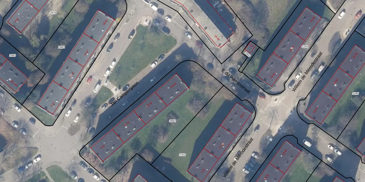 Het perceel waarop Jan Campertplein 64 staat heeft een oppervlakte van 2134 m². Dit is een zeer groot perceel. De perceeloppervlakte wordt geregistreerd door het Kadaster. Gedetailleerde informatie over de maten van dit perceel kunt u vinden in het rapport Kadastrale kaart met maatvoering van Jan Campertplein 64.