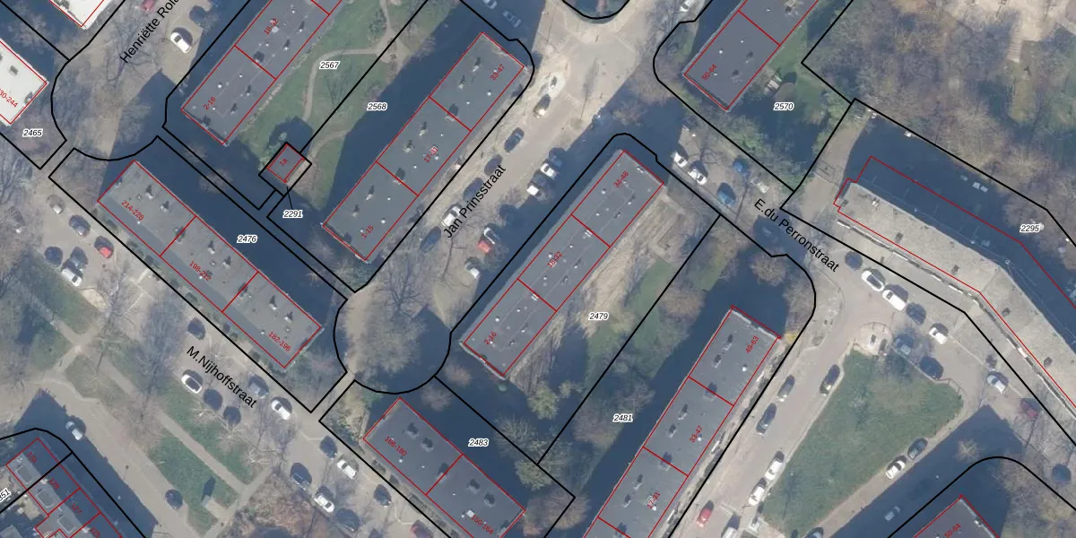 Het perceel waarop Jan Prinsstraat 18 staat heeft een oppervlakte van 1481 m². Dit is een zeer groot perceel. De perceeloppervlakte wordt geregistreerd door het Kadaster. Gedetailleerde informatie over de maten van dit perceel kunt u vinden in het rapport Kadastrale kaart met maatvoering van Jan Prinsstraat 18.