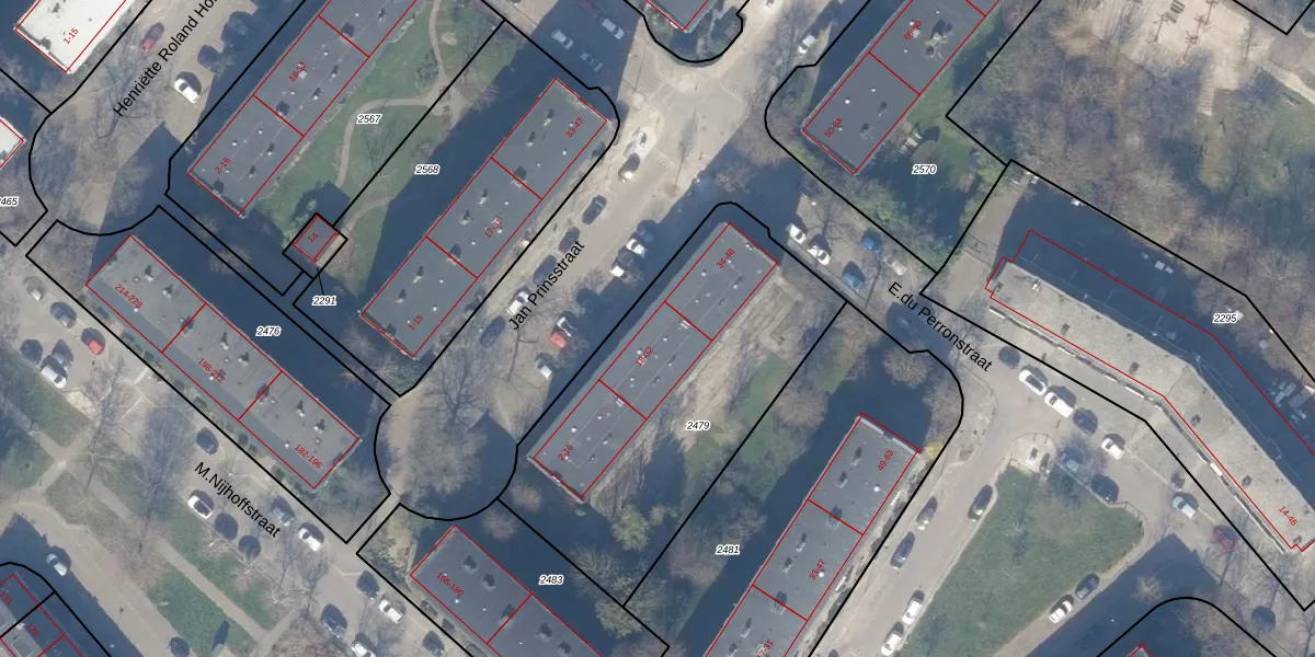 Het perceel waarop Jan Prinsstraat 26 staat heeft een oppervlakte van 1481 m². Dit is een zeer groot perceel. De perceeloppervlakte wordt geregistreerd door het Kadaster. Gedetailleerde informatie over de maten van dit perceel kunt u vinden in het rapport Kadastrale kaart met maatvoering van Jan Prinsstraat 26.