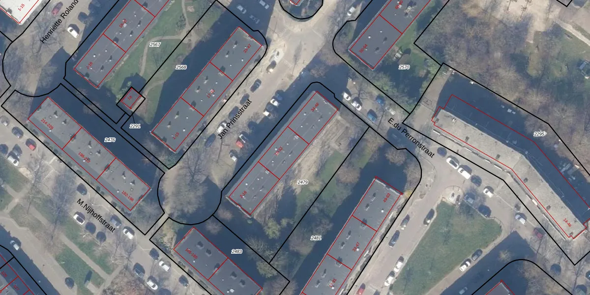 Het perceel waarop Jan Prinsstraat 30 staat heeft een oppervlakte van 1481 m². Dit is een zeer groot perceel. De perceeloppervlakte wordt geregistreerd door het Kadaster. Gedetailleerde informatie over de maten van dit perceel kunt u vinden in het rapport Kadastrale kaart met maatvoering van Jan Prinsstraat 30.